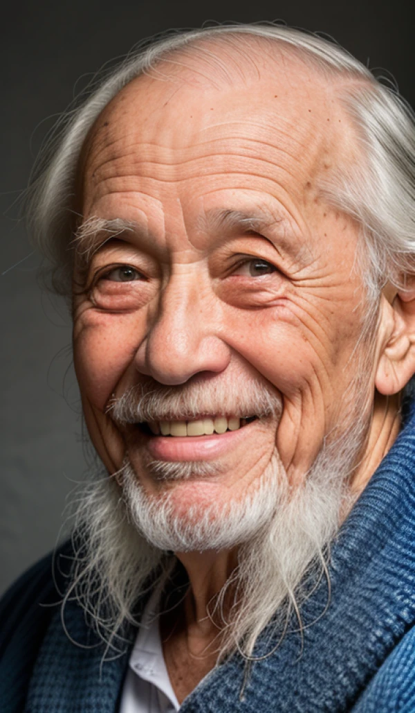 Professional studio portrait of an old fisherman with deep wrinkles and a kind smile, side lighting, Nikon D850 photography style